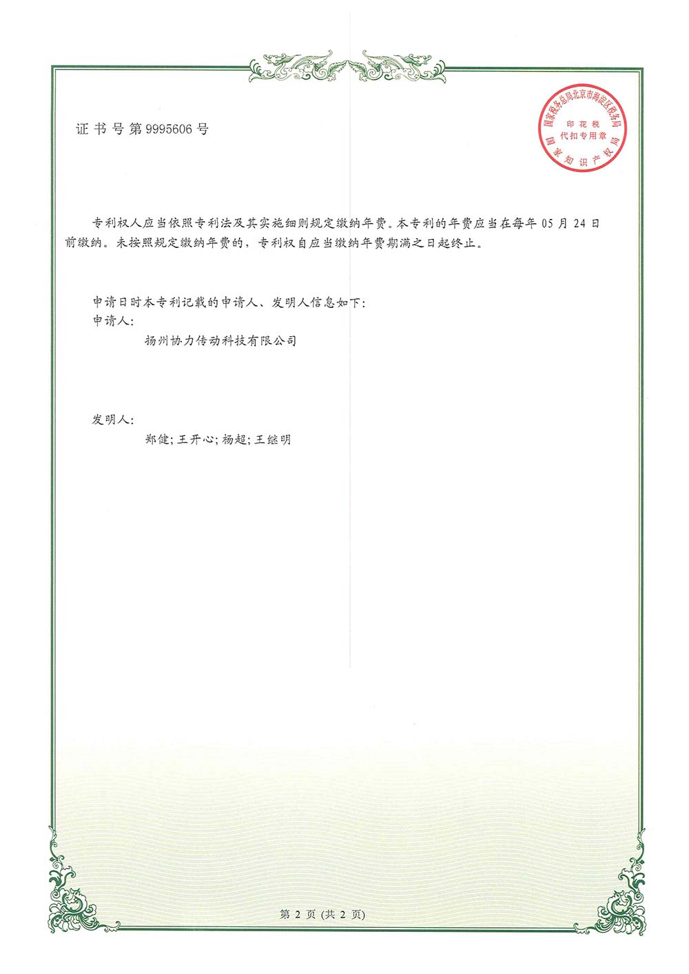 > 一種便于操作的高負載定距式磁力耦合器實用新型專利證書