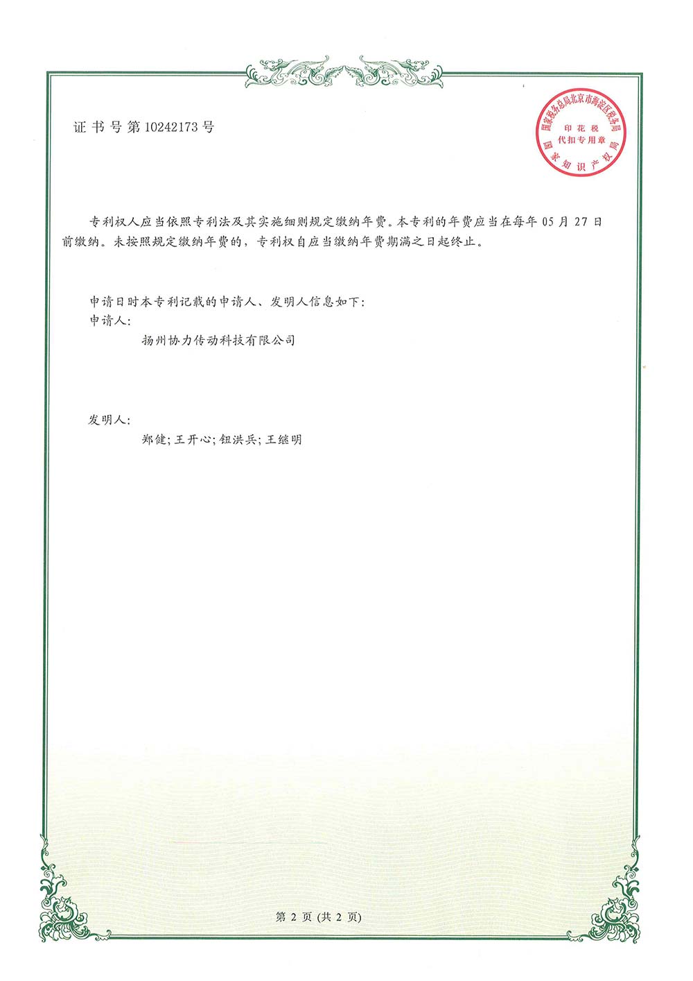 > 一種無(wú)刷永磁調(diào)速結(jié)構(gòu)實(shí)用新型專(zhuān)利證書(shū)