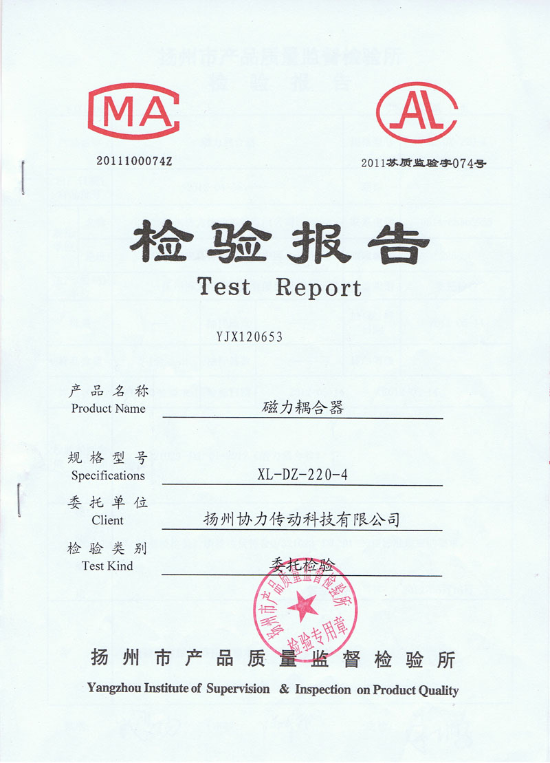 > 磁力耦合器檢驗報告