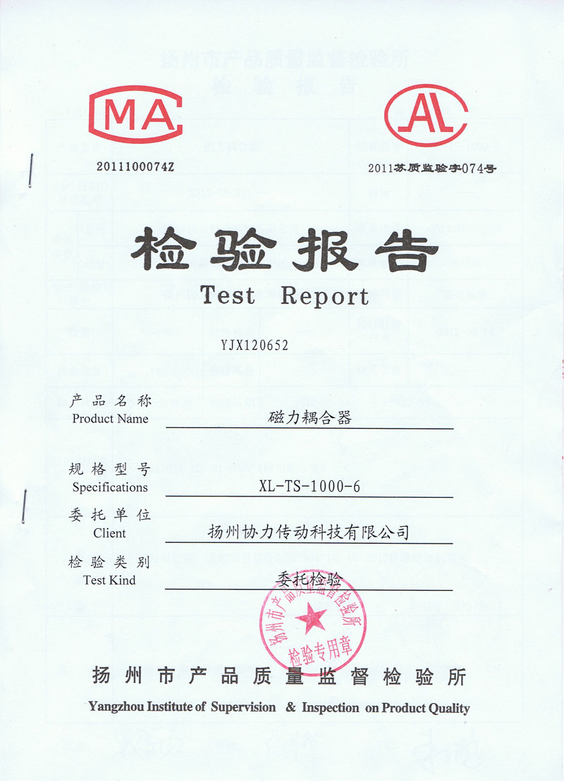 磁力耦合器檢驗報告
